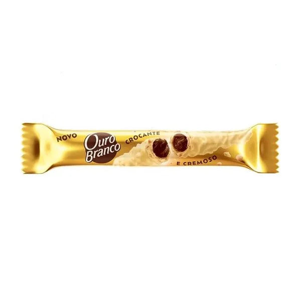 Este produto contém Lacta Ouro Branco, um delicioso stick feito com ingredientes premium e pesando 25g.